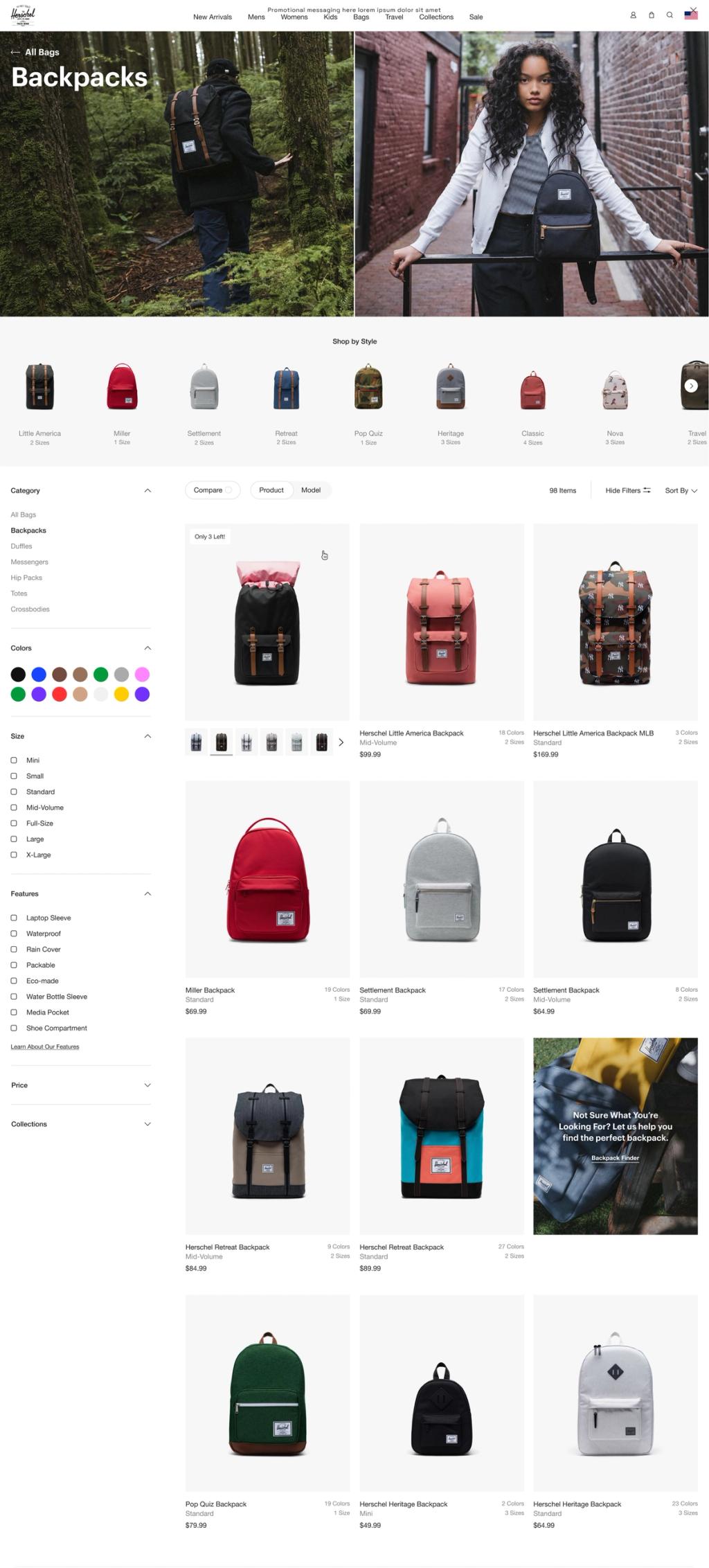 One of the primary complaints from the site experience was the lack of context around the size of Herschel’s most iconic product - the backpack. The lifestyle imagery was beautiful, but the product imagery lacked the context shoppers needed to make an informed buying decision.